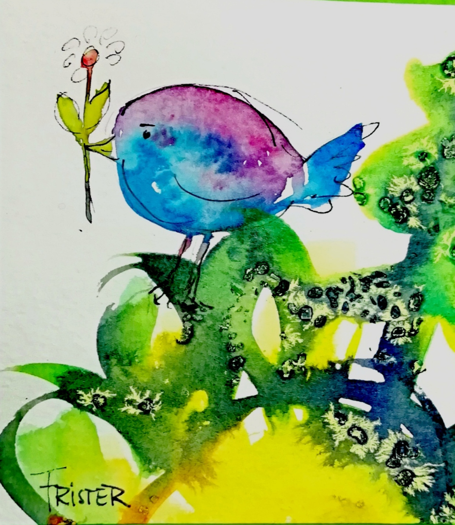 Ein Teil meiner Arbeiten entsteht in Aquarell – leicht, spontan und voller Lebendigkeit.Ich nutze diese Technik gern für kleine, spielerische Motive oder Grußkarten, die mit poetischen Worten ihren ganz eigenen Charme entfalten.